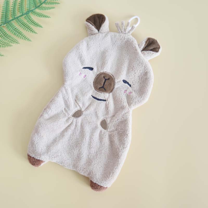 Capybara Ice Cream Embroidery Hand Towel | 29×16cm Coral Fleece | Super Absorbent | Kitchen & Car Use